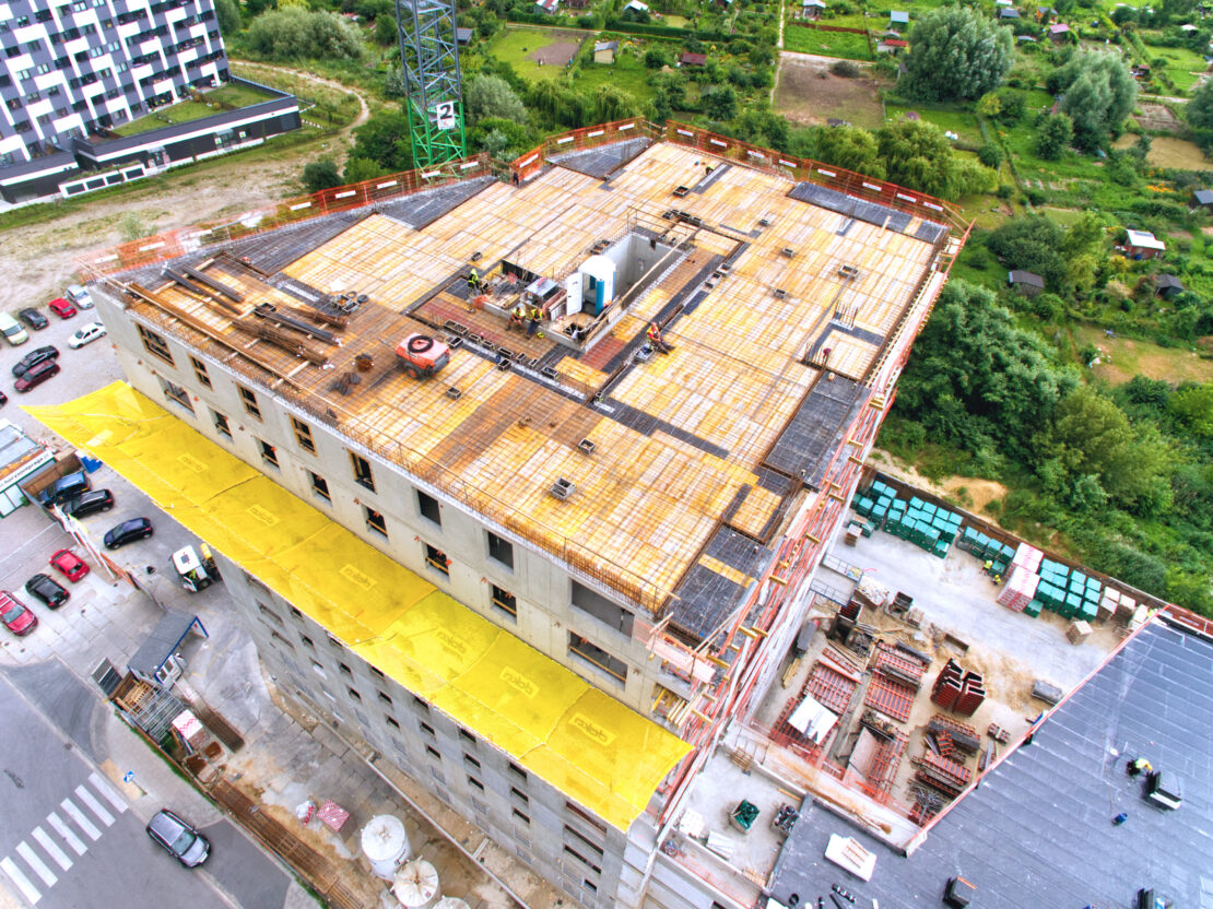 budynek mieszkalny wielorodzinny z 18 kondygnacjami naziemnymi, częścią usługową i dwukondygnacyjną podziemną halą garażową. Główne parametry budynku są następujące: powierzchnia całkowita – 18976,78 m2; powierzchnia użytkowa mieszkań i usług – 9878,31 m2; kubatura budynku – 63972,53 m3; wysokość budynku – 54,44 m; ilość kondygnacji podziemnych – 2; ilość kondygnacji nadziemnych – 18; ilość lokali mieszkalnych – 164 szt.